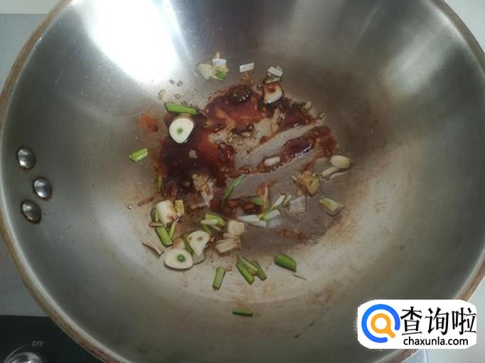 炒锅余油,等油五成熟时,放入葱、姜、蒜炒出香味。再加入1勺盐,2勺味极鲜酱油,1勺蚝油调味。