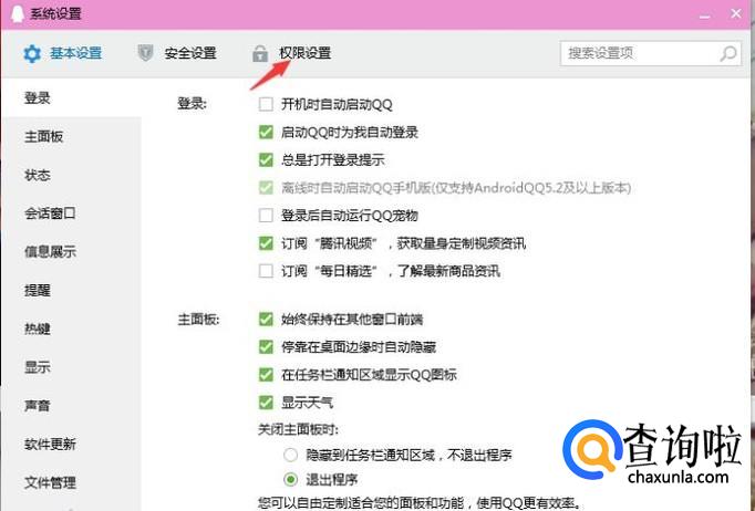 登录后在qq主页版点击左下角第一个图标进入到设置里面。
