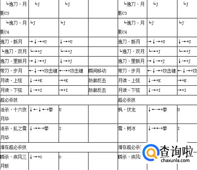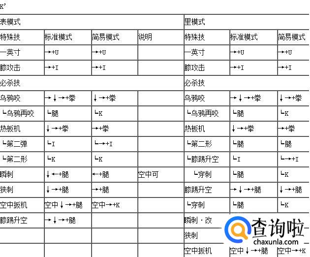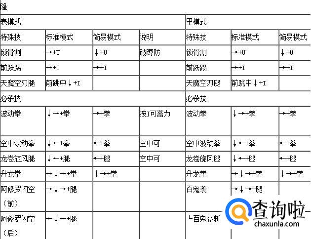 拳皇wing1.91隆表里模式出招表,如下: