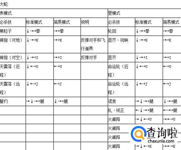 拳皇wing1.91大蛇表里模式出招表,如下:
