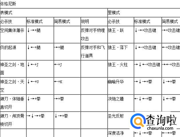 拳皇wing1.91伊格尼尔表里模式出招表,如下: