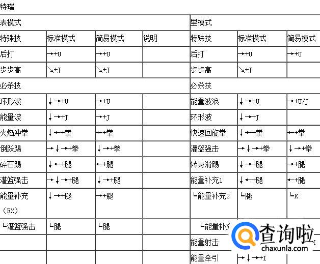 拳皇wing1.91特瑞表里模式出招表,如下: