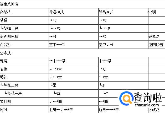 拳皇wing1.91库拉表里模式出招表,如下:
