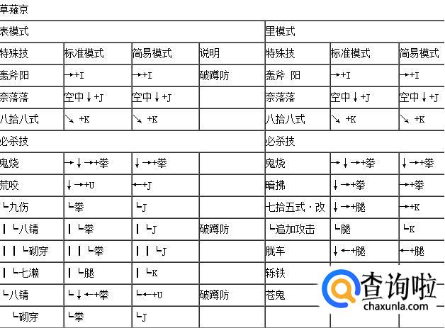 拳皇wing1.91草薙京表里模式出招表,如下: