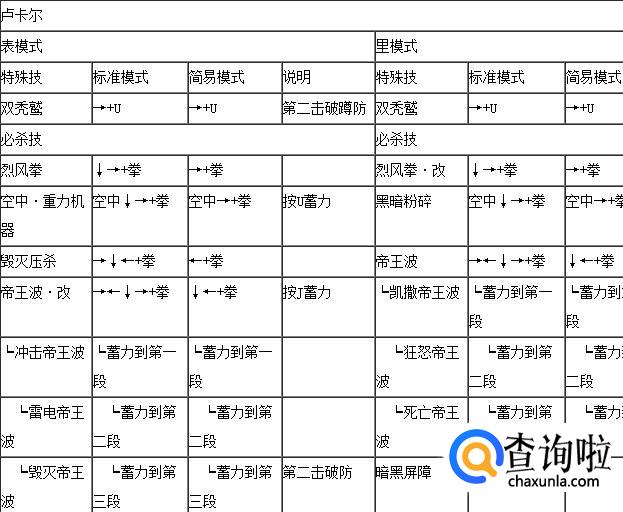 拳皇wing1.91卢卡尔表里模式出招表,如下: