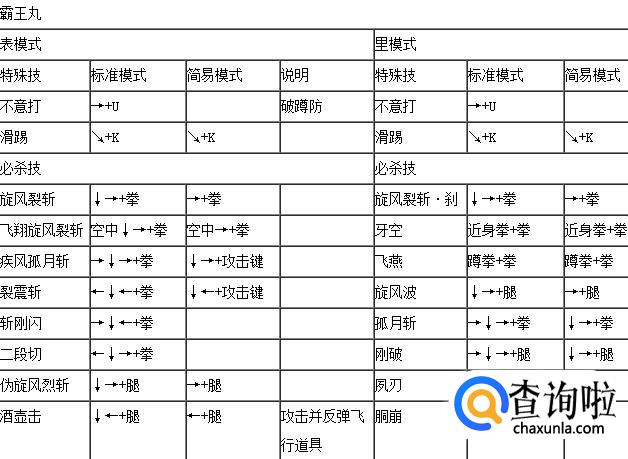 拳皇wing1.91霸王丸表里模式出招表,如下: