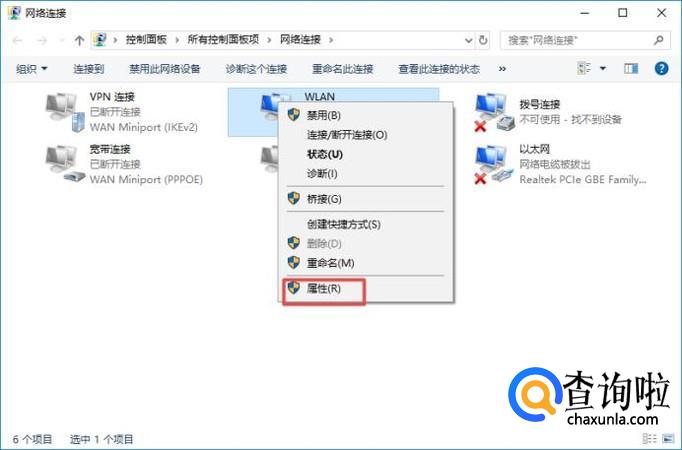 弹出的界面,我们右击无线网络,弹出的界面,我们点击属性;