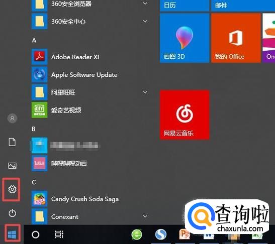 笔记本上不了网往往是由于我们的设置上面出现了错误导致的,我们点击左下角的微软按钮,弹出的界面,我们点击设置;