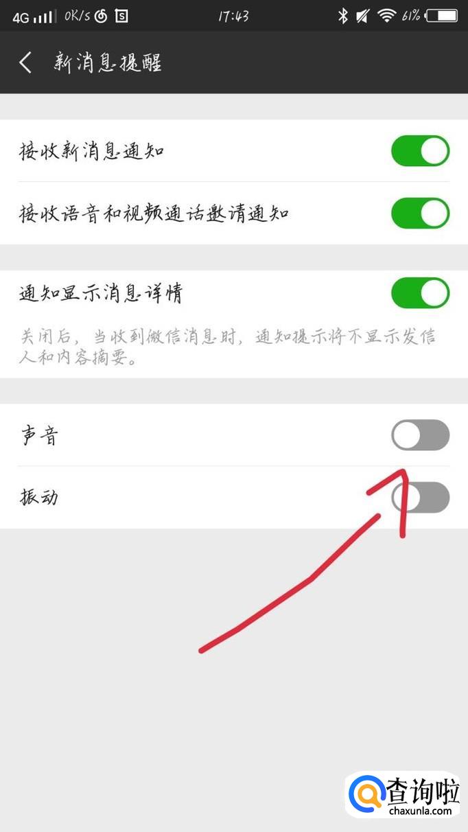 会出现一个新的界面,如图1所示。然后你将声音和振动后面的开关关掉就可以了。