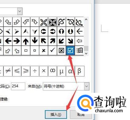打开word,然后点击导航栏中的插入,接着选择符号即可,这样就能直接将带有勾号的框选进来了。