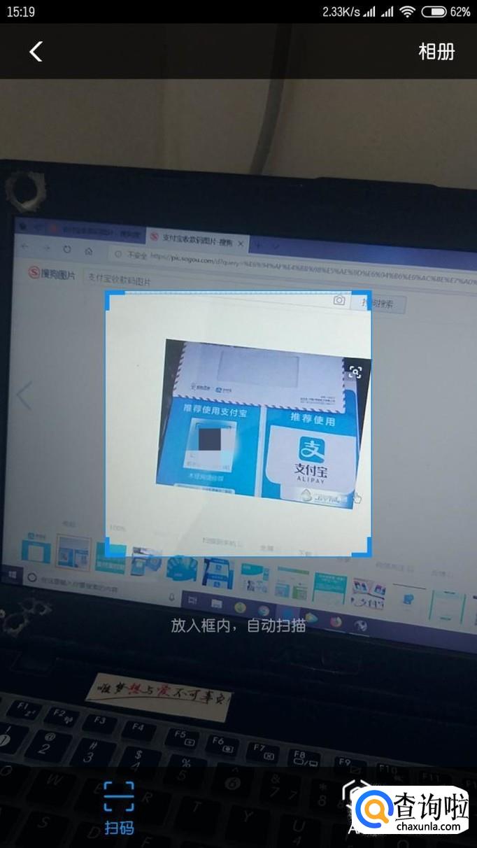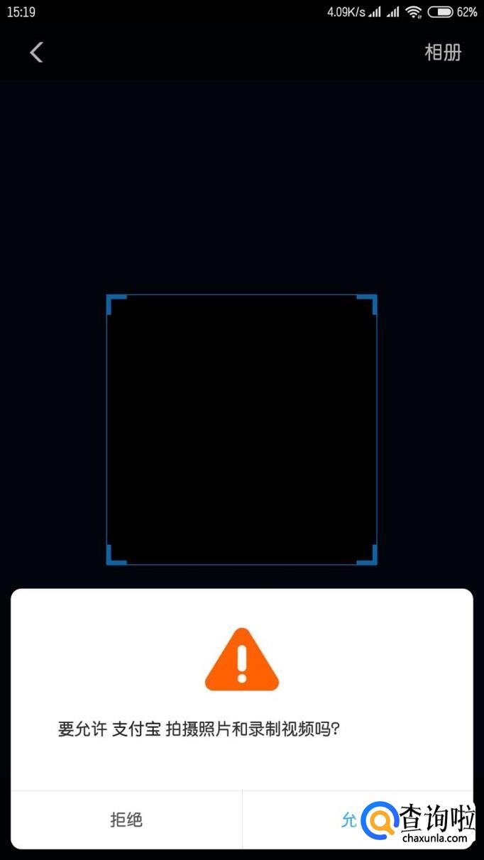 此时支付宝会申请我们手机相机的权限,允许授权,并找到商家的收款码。