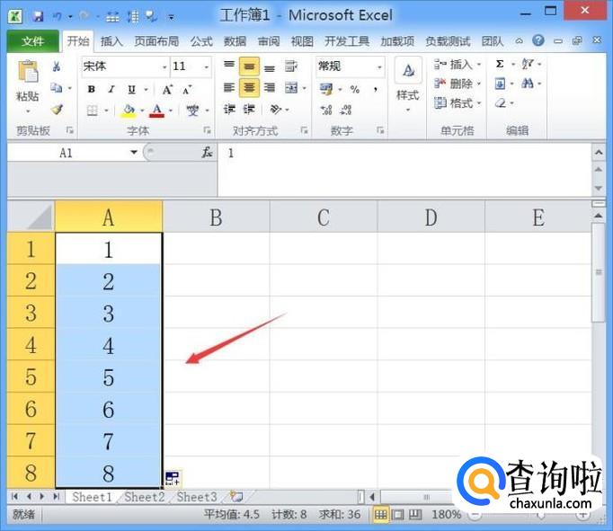 选择数字之后将鼠标移动到右下角,等鼠标变成黑色的十字加号时就可以下拉填充了,如图所示: