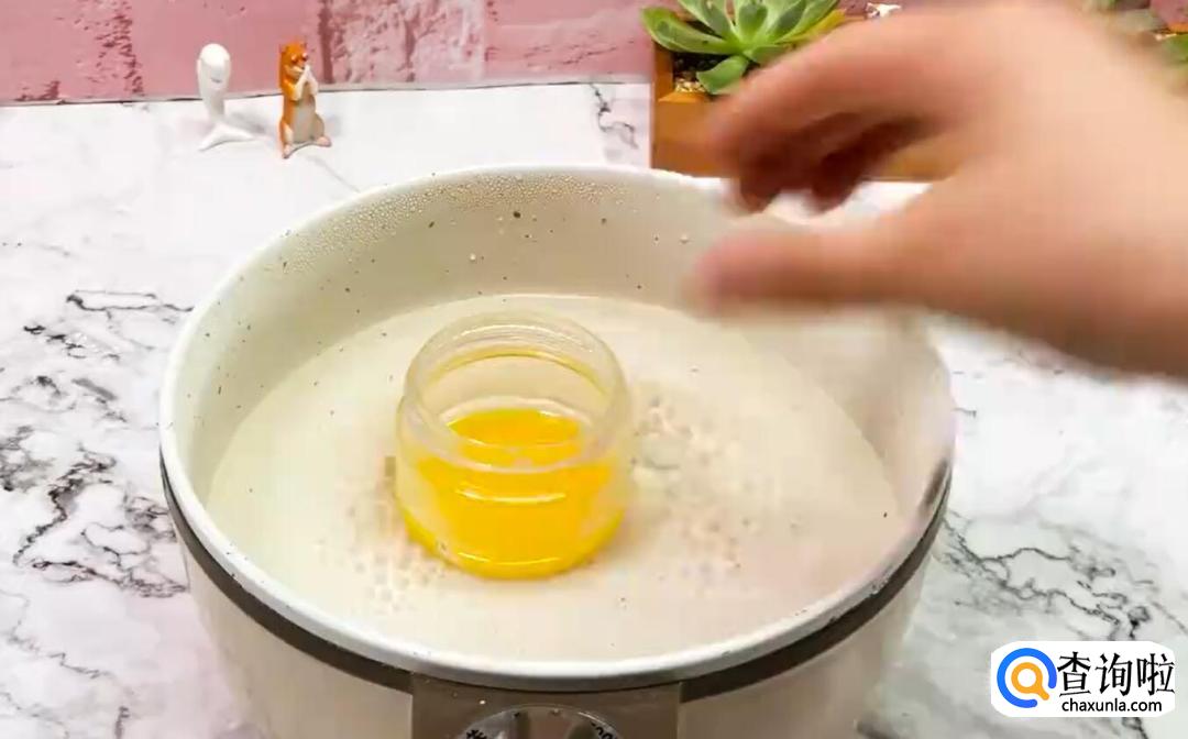 首先,在锅中加水,把水烧开,然后把黄油放入一个小碗中。小碗放进开水中,隔水融化黄油。