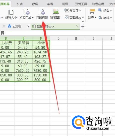 进入之后,点击“打印标题”,进入下一页面,如图所示。