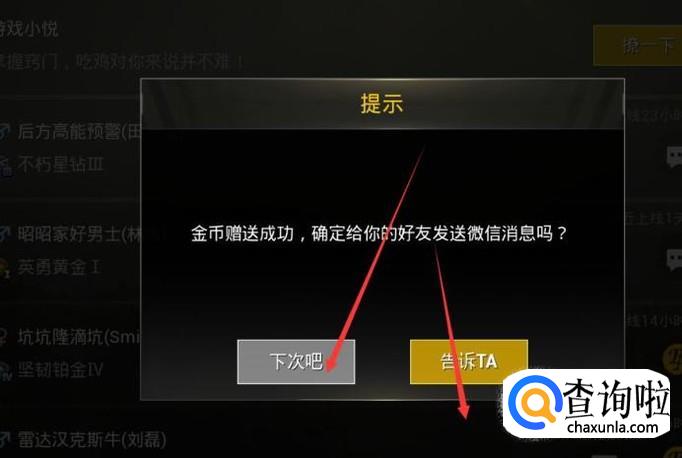 如果你想赠送给你的游戏内的好友,你只需要找到里面的游戏好友,然后找到好友后面的赠送金币就可以了。