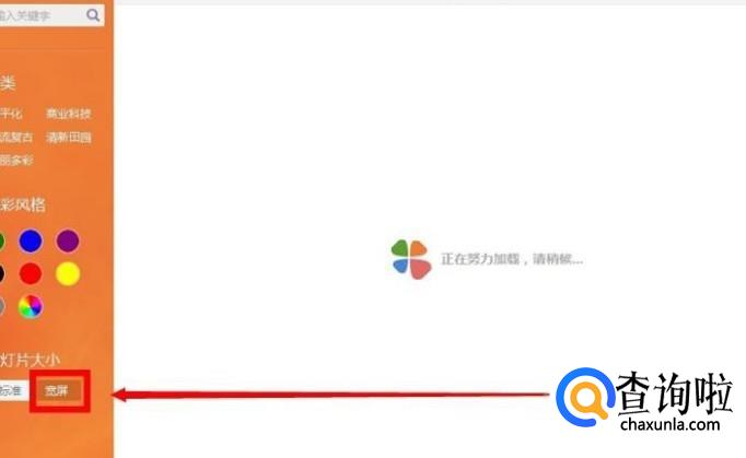 进入之后,在幻灯片大小处选择“宽屏”,如图所示。
