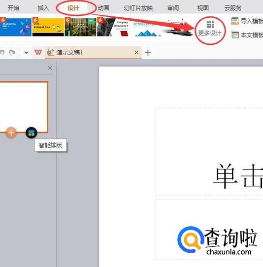 点击“设置”,然后点击“更多设计”,如图所示。