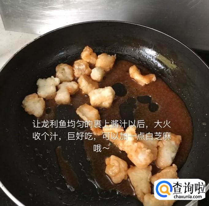 接着倒入龙利鱼块,翻炒上色,开大火收汁就可以了。
