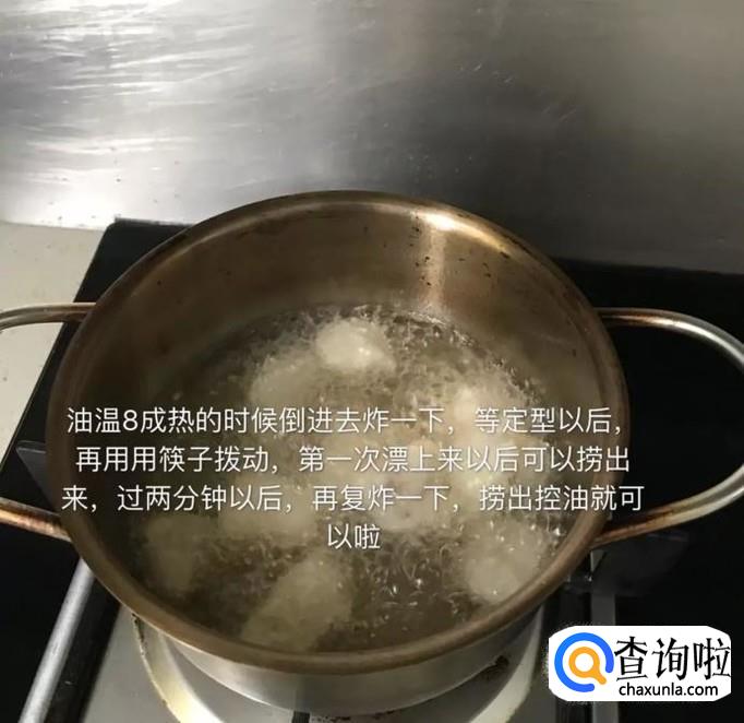 然后在不粘锅中放入适量的油,开小火翻炒两分钟,如下图所示。