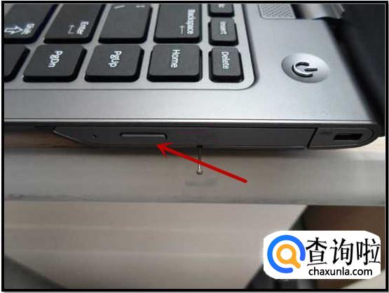 找到笔记本的光驱位置,按下开启按钮弹出光驱。