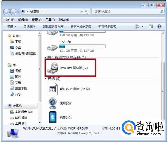 在计算机中找到DVD驱动器,双击也可打开光驱中的光盘文件。