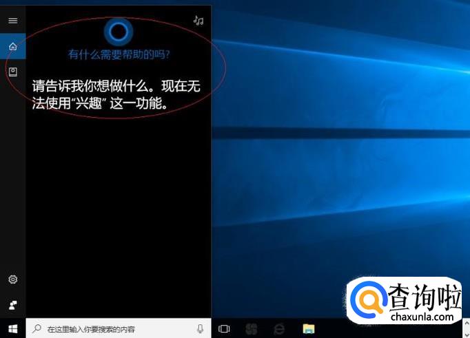 启动Windows 10操作系统,如图所示。点击任务栏搜索框,开始使用Cortana(小娜)智能语音助理。
