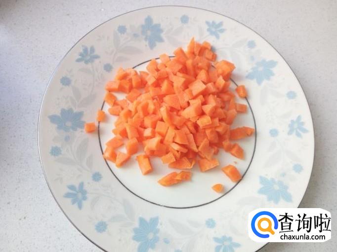 胡萝卜去皮,用水清洗干净,控干水分,切成碎丁。