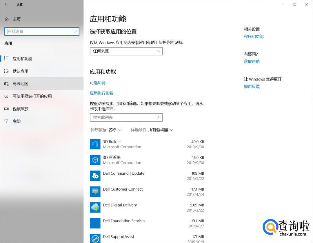 进入到“应用和功能”的界面。这里有安装到电脑的所有软件。