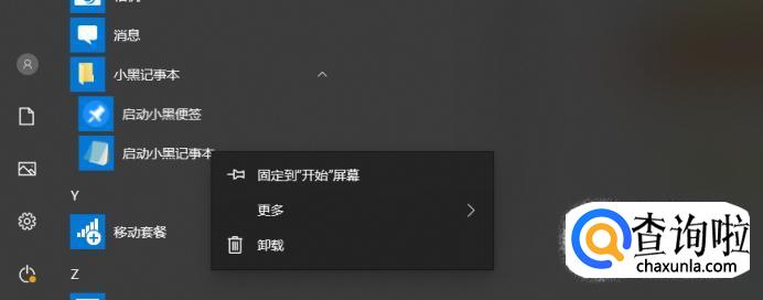 打开小黑记事本的文件夹,点击启动小黑便签右键,点击卸载,即可卸载。