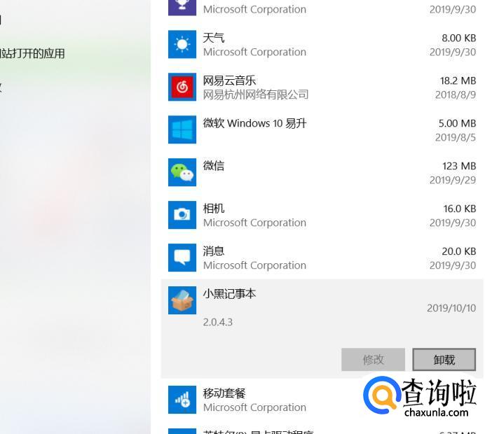 在页面中找到“小黑记事本”,点击卸载。