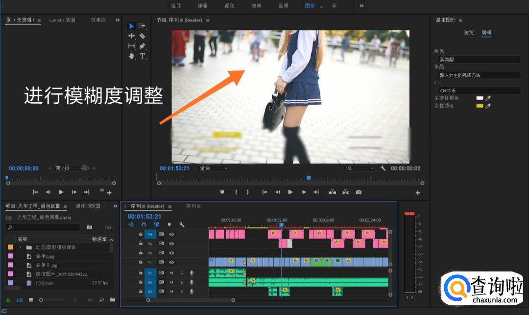 视频效果里找到“模糊与锐化里的高斯模糊”,打开进行模糊度调整。