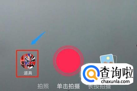 然后就跳转到了视频拍摄界面,点击最下方的红色按钮就可以录制视频了,我们注意到其左侧有一项“道具”;