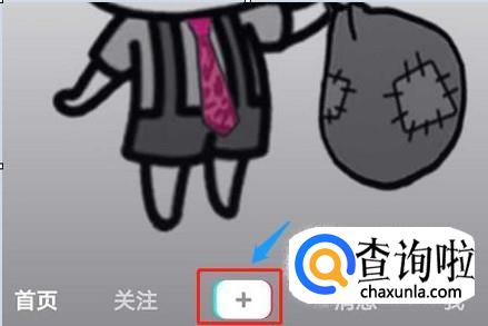 在手机桌面点击抖音短视频APP,进入到应用以后,我们点击页面最下方的“+”图标,如图所示;