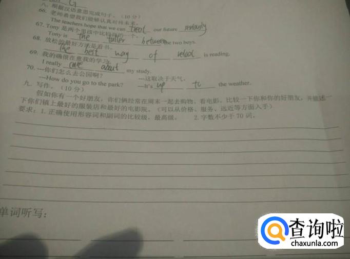 作文一定要注意格式!无论如何,作文一定要写。这句话我们老师也经常和我们说的。当你没时间思考了,你可以抄一段阅读理解,不过不到万不得已,千万别这样。一般的话,稍微准备一下,背几句固定句型,就会得到很高的分数。