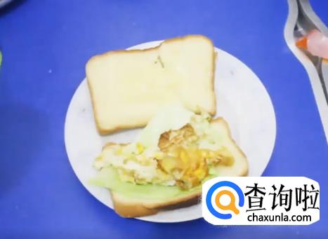 最后用另外一片面包片盖上,这样早餐面包片就制作完成啦。