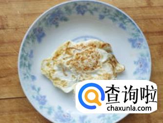鸡蛋煎熟之后,先放在碗里备用。