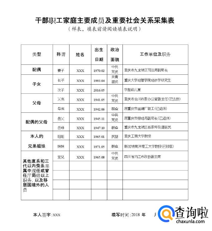 不过在实际填写的时候,需要注意的是:不用全部填写,一般填在政治上、思想上、生活上与你有密切联系的旁系亲属或社会关系中有地位、高学历,社会贡献较大的人。