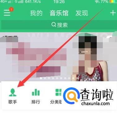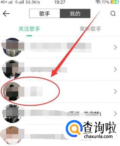 在“歌手”,进入歌手页面之后,找到自己关注的歌手,点击并进入,如图所示。
