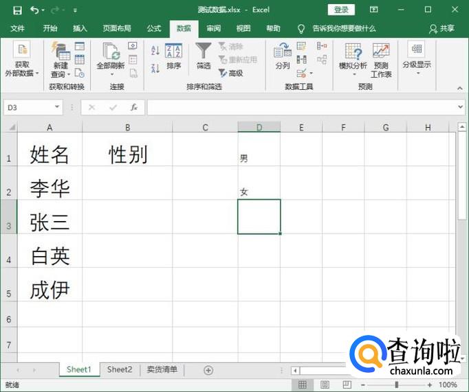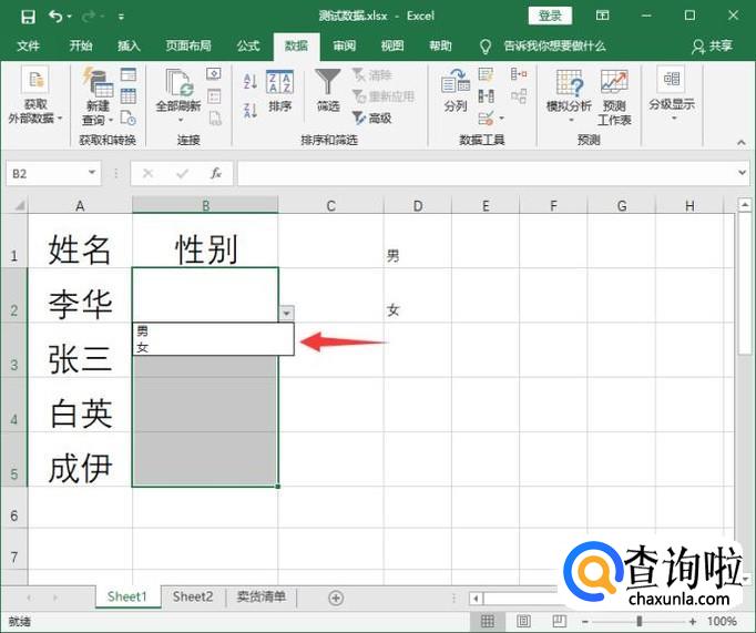 接着我们可以看到选中的单元格数据只能选择男和女了。
