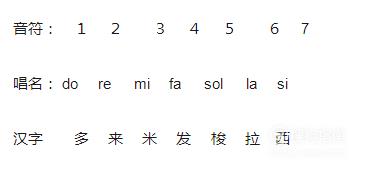 在简谱中,用以表示音的高低及相互关系的基本符号为七个阿拉伯数字,即1、2、3、4、5、6、7,唱作do、re、mi、fa、sol、la、si,称为唱名。
