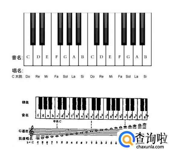 音名在键盘上的位置如下图: