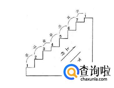 音阶的种类很多,以上为最基本的自然大调音阶。在音阶中,相邻两音之间的音高距离不是均等的,其中 3与 4、7与 i之间为半音关系,其余各相邻两音之间为全音关系。一个全音等于两个半音。