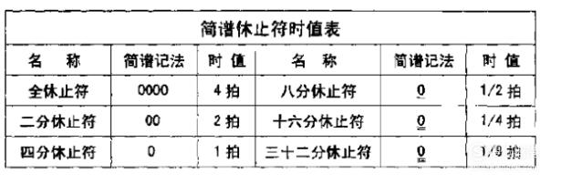 休止符停顿时间的长短与音符的时值基本相同,只是不用增时线,而用更多的 O来代替,每增加一个 O,表示增加一个相当于一个四分休止符的停顿时间,O越多,停顿的时间越长。