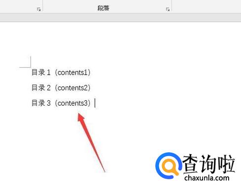 首先在word中输入标题,这里写上目录1、2、3来区分,直接在word中输入对应的文字即可。