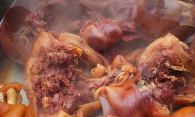 主要是因为在几十年前,猪头肉算是没什么人瞧得起的食材,比猪肉便宜太多。农村家庭人口多,一户就有好几个孩子要喂养,买一个猪头肉,能让全家吃上猪肉的味道。如今,猪头肉作为下酒菜,价格早已飙升。一些南方的乡村,拜神祭祖频繁,以猪头为主的案头才能彰显人们的虔诚。