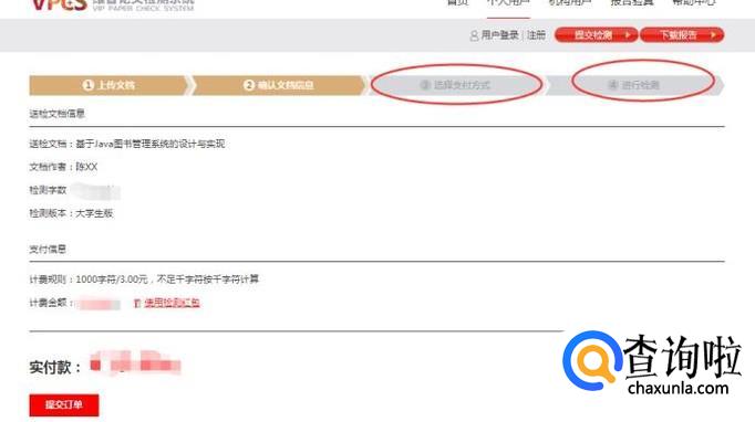 然后选择支付的方式,点击【提交订单】按钮即可,支付完成之后,就开始检查了,一般需要2个小时左右的时间,如下图所示: