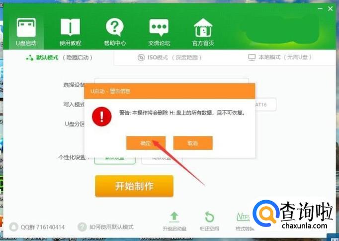 点击开始制作,会提示U盘数据将被清空,点击确定