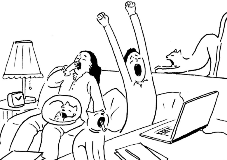 人在疲倦时,血液内二氧化碳增多,刺激大脑呼吸中枢,引起深呼吸活动,也就是打哈欠。通过一次大量补充氧气,呼出二氧化碳,来恢复血氧浓度,维持大脑正常工作。脸部的夸张运动有助放松肌肉,缓解疲劳。