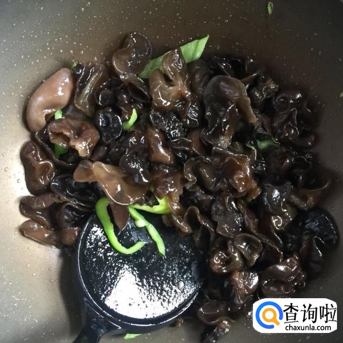 然后把木耳洗净沥干,倒入锅中翻炒五分钟。