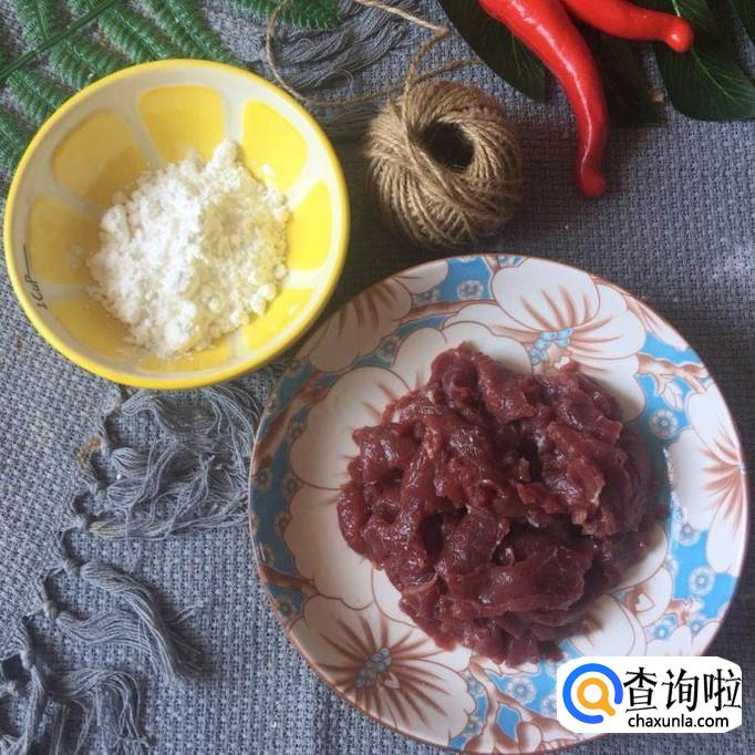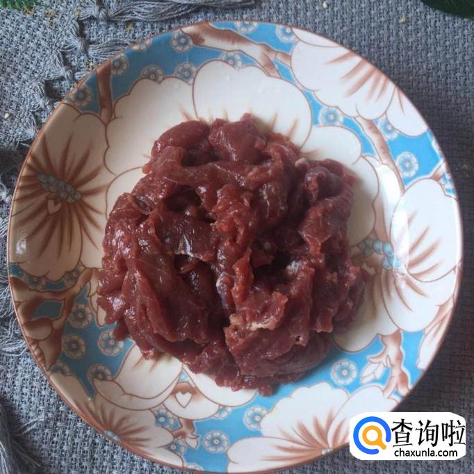 接着把买回来的牛肉洗干净,切成薄片,如下图所示。